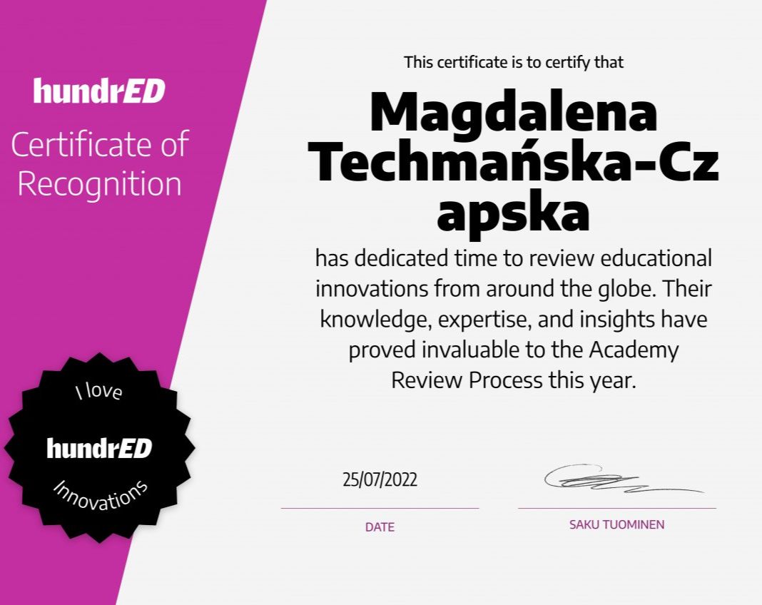 potwierdzający nasze kompetencje w zakresie stosowania nowoczesnej edukacji językowej
